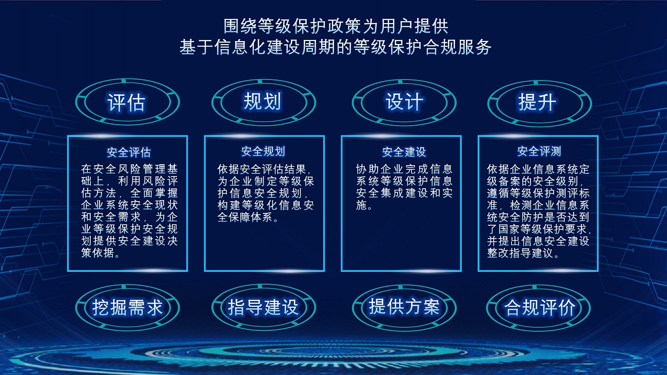 等级保护是我国信息安全保障的基本制度、基本策略和基本方法。聊城市方寸网络科技有限公司是获得等级保护测评机构认定的企业,在等级保护服务实践中形成了等保全生命周期服务,从定级备案咨询、安全建设整改、等级保护测评、到监督检查改进均能够提供专业的服务,在辅助企业完成等级保护建设工作的同时,实际提升系统运营使用单位的信息安全防护能力。